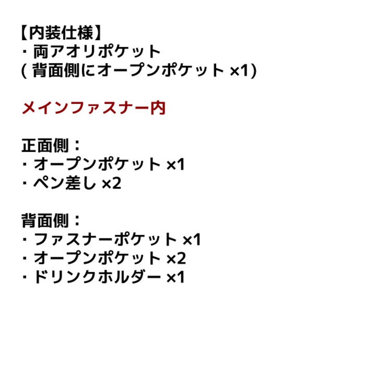 多機能でポケット数も多く、ペン刺しやペットボトルホルダーなどもございます。